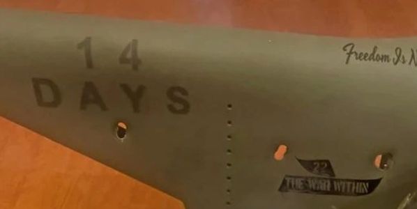 He searched several antique stores before finally locating a piece of the fuselage from a Huey helicopter that had been flown in Vietnam. That piece of the Huey had three bullet holes in it. “The most I counted in our Huey was 14 from one firefight,” Baker said. “David wrote the number 14 on the panel, the average life expectancy (in days) of a doorgunner in Vietnam.